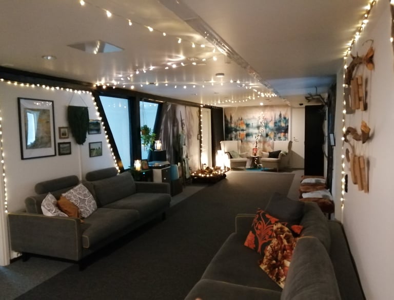 Mahdollisuus muokata tilaa myös valmennus-, työnohjaus- ja terapiakäyttöön niin, että hoitopöydän tilalla on 2 nojatuolia. Saatavilla ma-su klo 8 alkaen ja sopimuksen mukaan.